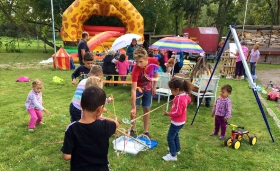 Viel ehrenamtliches Engagement ermöglichte das gemeinsame Essen: Ein großer Renner bei den Jugendlichen war der Crépe-Stand. Das Buffet mit mitgebrachten Speisen aus den jeweiligen Heimatländern rundete das Fest ab. Außerdem gab es Lamm am Spieß, Dönerspieß, Würstchen und Kuchen. Livemusik und Tanz sorgten ebenfalls für gute Stimmung. Für die Kinder gab es eine Hüpfburg, Kinderschmiken, Fußball und andere Spiele.