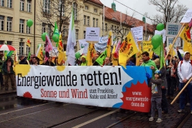 Mehr als 2.000 Menschen haben am Samstag in Potsdam für eine Fortsetzung der Energiewende demonstriert. Sie zogen von der Staatskanzlei über den Landtag zum Brandenburger Tor. Mit den Worten "Die Energiewende retten - Sonne und Wind statt Fracking, Kohle und Atom" war der Kundgebungs-Aufruf in Potsdam überschrieben.