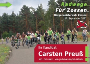 Haben Sie sich auch schon gefragt, wie wir unsere Ortsteile noch näher aneinanderrücken können? Die Antwort ergibt sich aus unserem Alltag: Wir alle bewegen uns täglich hin und her: mit dem Bus, dem Auto, dem Fahrrad, zu Fuß. Quer durch Zossen und seine Ortsteile. Und gern mit dem Rad. Deshalb ist es mir besonders wichtig, neben dem touristischen Radwegenetz, den Alltagsradverkehr zu fördern. Die Ortsteile und bewohnten Gemeindeteile müssen gefahrlos mit dem Fahrrad erreichbar sein. So können endlich auch die Schulwege sicherer werden. Gleichzeitig wird der Zusammenhalt der Ortsteile gefestigt und unsere Region als Naherholungsgebiet erschlossen. Auch die bessere Verknüpfung zwischen Rad- und öffentlichem Nahverkehr möchte ich erreichen. Die Liste der auszubauenden Rad-, Geh- und Wanderwege ist lang, das haben auch unsere Radtouren gezeigt. Zwischen manchen Orten fehlen die Verknüpfungen gänzlich. Deshalb werde ich zum Thema Radwege an Bundes-, Landes- oder Kreisstraßen mit den zuständigen Behörden die Gespräche wieder aufnehmen.