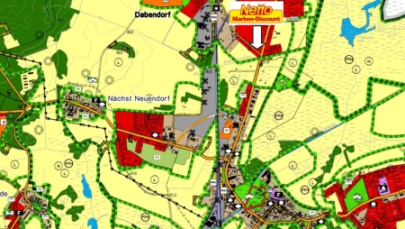 In Dabendorf soll an der Ecke Brandenburger-/Stubenrauchstraße (B96) ein neuer Discounter entstehen. Die Stadtverordneten stimmten am 29.03.2017 mehrheitlich für einen Aufstellungsbeschluss über den vorhabenbezogenen Bebauungsplan "Standortverlegung Discounter" in Zossen.
