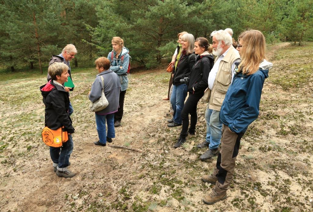 Kathrin Plaschke von der Stiftung NaturSchutzFonds Brandenburg erläuterte Sinn und Zweck der jetzt angelaufenen FFH-Managementplanung (Die Fauna-Flora-Habitat-Richtline schützt Lebensräume sowie wild lebende Tiere und Pflanzen). Die FFH-Managementpläne sind ein zentrales Instrument um die Erhaltungsziele für das Gebiet zu konkretisieren. Dazu gehören Maßnahmen zur Erhaltung und Wiederherstellung eines günstigen Erhaltungszustandes. Vor allem soll die Akzeptanz und das Engagement für die Umsetzung von Maßnahmen in den jeweiligen Regionen gefördert werden. Dazu diente auch die Wanderung.