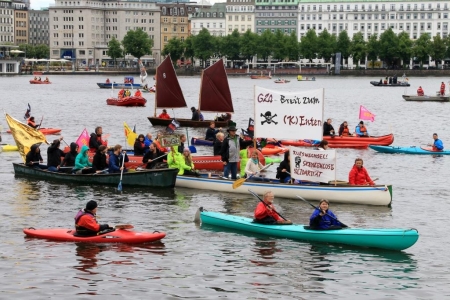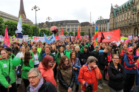 In Hamburg war am vergangenen Sonntag der Auftakt der großen Proteste gegen den G20-Gipfel. Unter dem Motto "G20 Protestwelle - Eine andere Politik ist nötig!" forderten die etwa 20.000 Teilnehmer mehr Engagement für den Klimaschutz und soziale Gerechtigkeit. Die Proteste gehen weiter. Am 08.07.2017 gibt es eine weitere Großdemonstration (www.g20-demo) "Grenzenlose Solidarität statt G20!" und weitere Protestveranstaltungen (www.g20-protest.de).