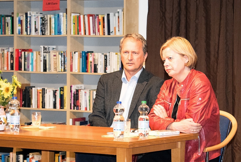 Nach der Lesung diskutierten Gesine Lötzsch und Carsten Preuß zusammen mit den Anwesenden über aktuelle Themen.