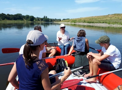 Das BUND-Elbeprojekt hatte eingeladen zum „Dialog im Boot“. Ort des Geschehens war ein Schlauchboot (ohne Motor) auf der Elbe zwischen Riesa und Mühlberg/Elbe; die „Mannschaft“ bestand aus Politikern, Wissenschaftlern, Naturschützern, Unternehmern und interessierten Anwohnern. Das Wetter: Sonnenschein und 35° Celsius.