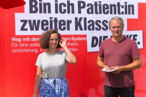 Dabei wurde deutlich, dass das Allgemeinwohl in Gesundheit und Pflege im Vordergrund stehen muss – nicht die Profitmöglichkeiten einzelner Konzerne. Der tatsächliche Bedarf muss für die Planung unserer Gesundheits- und Pflegelandschaft ausschlaggebend sein, nicht die Frage, ob Investoren sich Rendite versprechen. Die Finanzierung muss auf neue Füße gestellt werden. Wir brauchen eine Solidarische Gesundheitsvollversicherung. Alle zahlen ein, Beiträge werden auf alle Einkommen erhoben, alle werden gut versorgt. Zuzahlungen und Eigenanteile fallen in Zukunft weg.