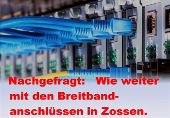 Die Linksfraktion will flächendeckende Breitbandanschlüsse in Zossen absichern. Wir möchten Klarheit hinsichtlich der flächendeckenden Versorgung mit hochleistungsfähigen NGA-Breitbandanschlüssen in unterversorgten Gebieten der Stadt.