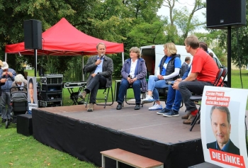 Verschiedene Diskussionsrunden zu Kommunal-, Landes- und Bundespolitischen Themen fanden interessierte Zuhörer. Mit dabei waren die Kandidat*innen für die Bundestagswahl Kirsten Tackmann und ich. Wir diskutierten mit Bürgermeister Helmut Wenzel, Kathrin Dannenberg von der Brandenburgischen Landtagsfraktion DIE LINKE und Thomas Fron, dem Fraktionsvorsitzenden der LINKEN in Lübbenau. Es ging u. a. um gleichwertige Lebensverhältnisse im ganzen Land. Ich machte deutlich, wie wichtig dafür der flächendeckende Breitbandausbau und eine leistungsfähige Infrastruktur mit ÖPNV und SPNV ist. Kirsten Tackmann und ich skizzierten zudem, wie wir die ökologische Herausforderung als Chance nutzen können.