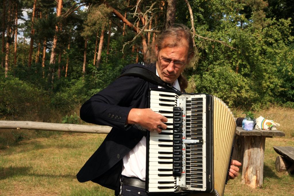 Ein Höhepunkt war die Reichung des Agapenmahls, bestehend aus Brot und Weintrauben. Die umfangreichen Vorbereitungen meisterte gekonnt der Aktionskreis der Kirchengemeinde. Sowohl Predigt als auch Liedtexte hatten das biblische Motiv des Weinstocks zum Thema. Die beiden vorangegangenen diesjährigen Sommergottesdienste der Kirchengemeinde fanden im Wald und auf einer Wiese statt. Alle drei waren gut besucht und für viele ein außergewöhnliches Erlebnis. Im Anschluss an den Gottesdienst und nach einer Stärkung mit Kaffee und Kuchen führte ich interessierte Besucher über den Weinberg. Mitinitiatoren Pfarrerin Anne Hensel konnte leider krankheitsbedingt nicht teilnehmen.
