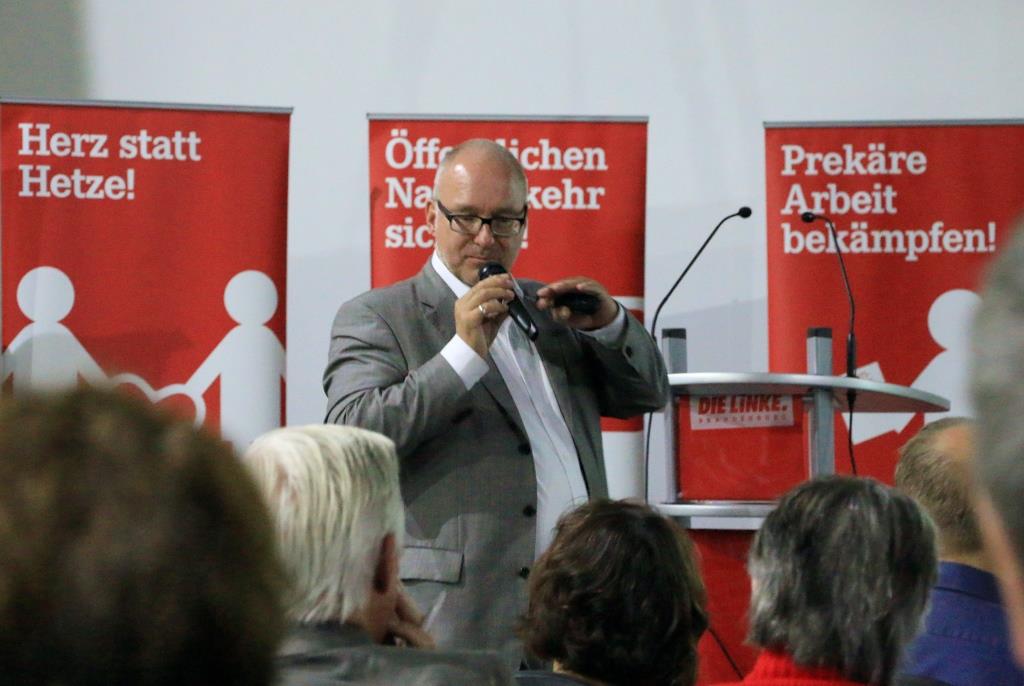 In seinem Vortrag erläuterte und begründete er die 11 Bausteine der LINKEN für eine armutsfeste Altersrente: