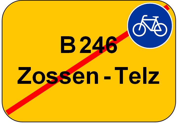 Der Bau des Radweges zwischen Mittenwalde nach Zossen begann bereits am 04.09.2009 mit einem ersten Spatenstich. Der ca. 7.4 Km lange und 2 m breiten Radweg (3,0 m einschl. Bankette) an der stark frequentierten Bundesstraße B 246, dient der Erhöhung der Verkehrssicherheit und führt darüber hinaus zur Förderung des Fahrradtourismus im südlichen „Speckgürtel" von Berlin. Der geplante, straßenbegleitende Radweg wird weitestgehend an den derzeitigen Geländeverlauf angepasst.