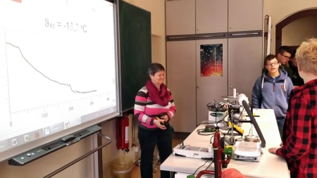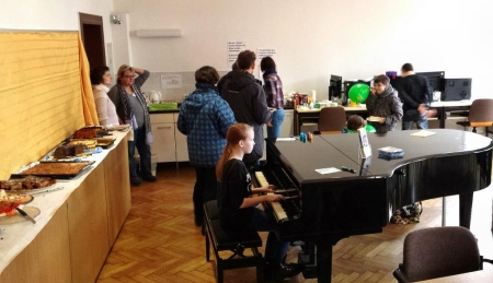 Im Physikraum wurden mehrere Versuche vorgestellt. Für alle Interessenten, die sich genauer über Hilfsmittel für Sehbehinderte informieren wollten, stellten Firmen ihre Produkte in der Aula aus. Mit Kaffee und Kuchen wurde im Lehrerzimmer bei Klaviermusik für das leibliche Wohl gesorgt.
