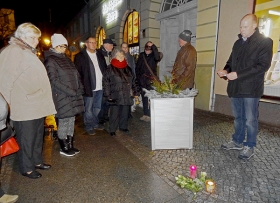An den drei Zossener Stolperstein-Adressen wurde am späten Nachmittag an jene Zossener Juden erinnert, die dem Holocaust zum Opfer fielen.