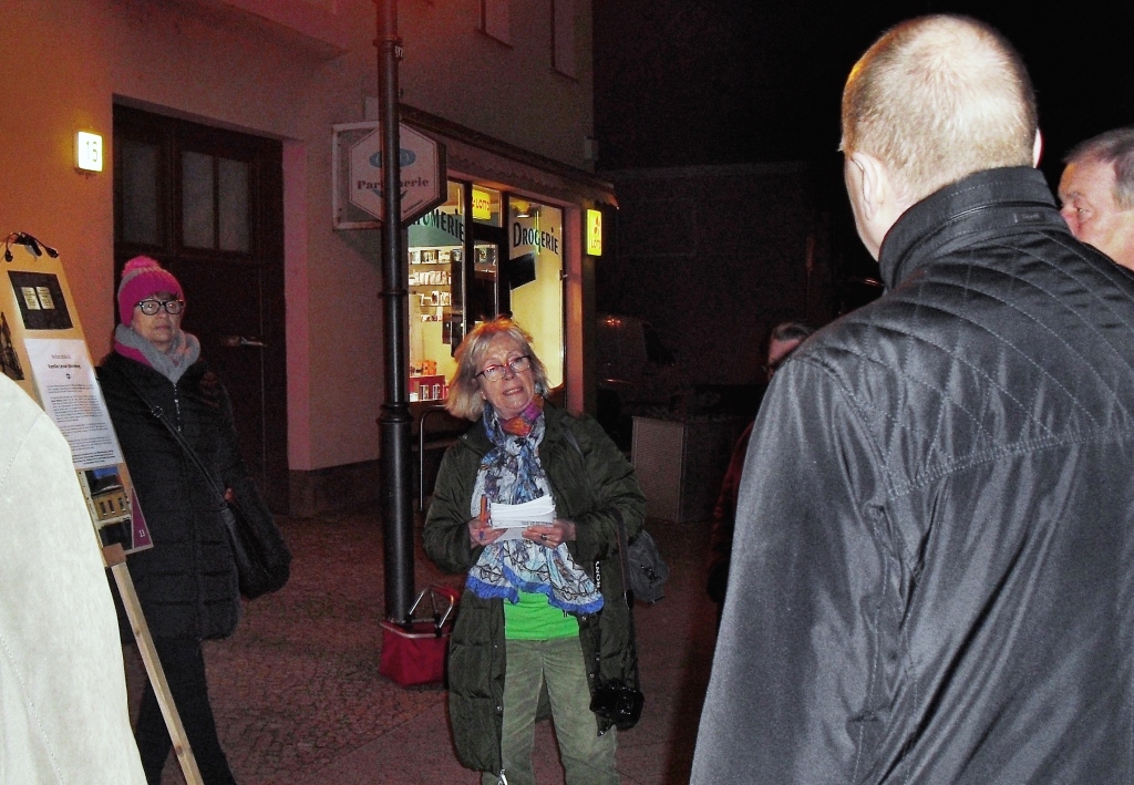 Die Bürgerinitiative Zossen zeigt Gesicht gedachte am 27. Januar 2016 auf dem Zossener Marktplatz der Opfer des Nationalsozialismus. Im Laufe des Tages wurden die Stolpersteine in der Stubenrauchstraße, Berliner Straße und auf dem Marktplatz gesäubert.