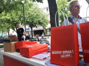 Schon nach wenigen Minuten herrschte Betrieb am Wahlstand. Die Themen, die immer wieder angesprochen wurden waren gerechte Löhne, auch im Hinblick auf Ost und West, Kinderbetreuung und eine Rente, von der man leben kann. Themen, zu denen DIE LINKE auch die Richtigen Vorschläge hat.